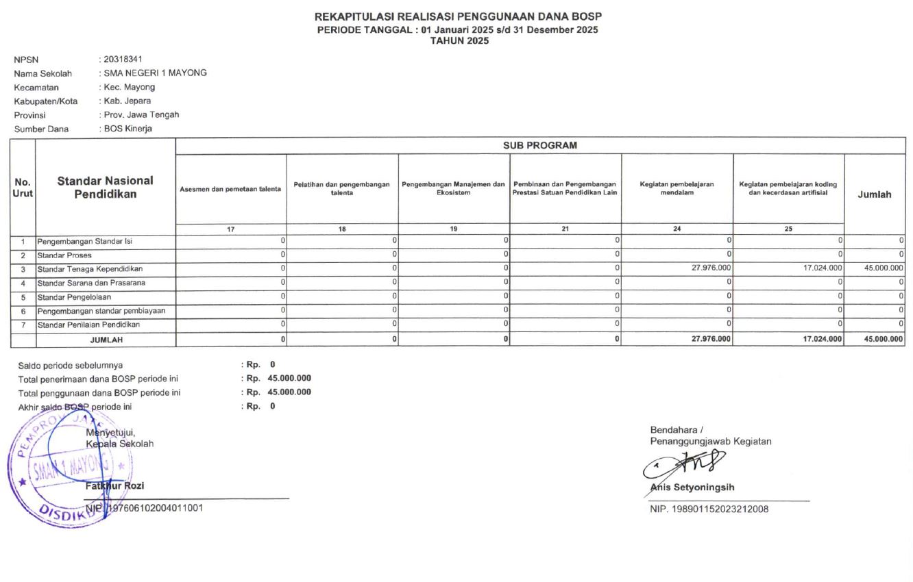 LAPORAN REKAPITULASI PENGGUNAAN DANA BOSP TAHUN 2025