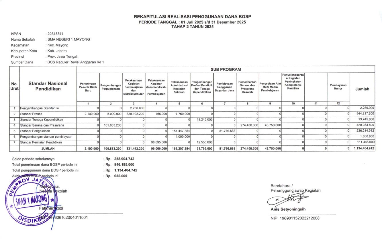 LAPORAN REKAPITULASI REALISASI PENGUNAAN DANA BOS REGULER TAHAP 2 TAHUN 2025